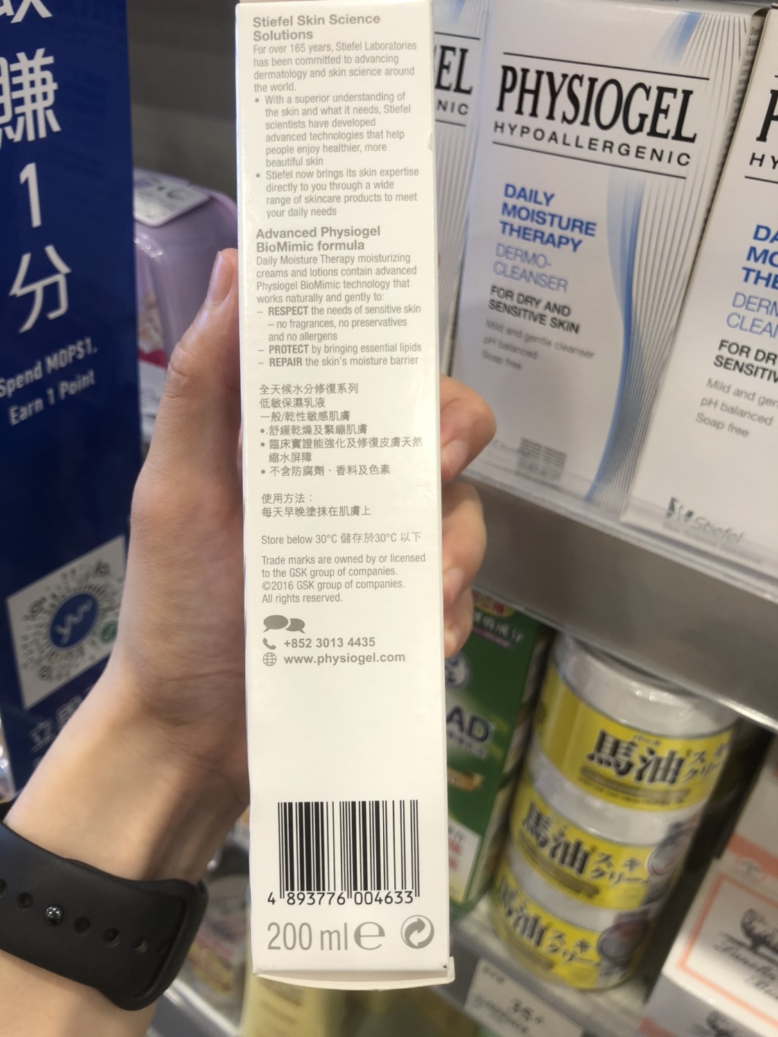 Spot Macau Mannings purchase imported Faisijia physiogel lotion sensitive muscle gentle moisturizing 200ml