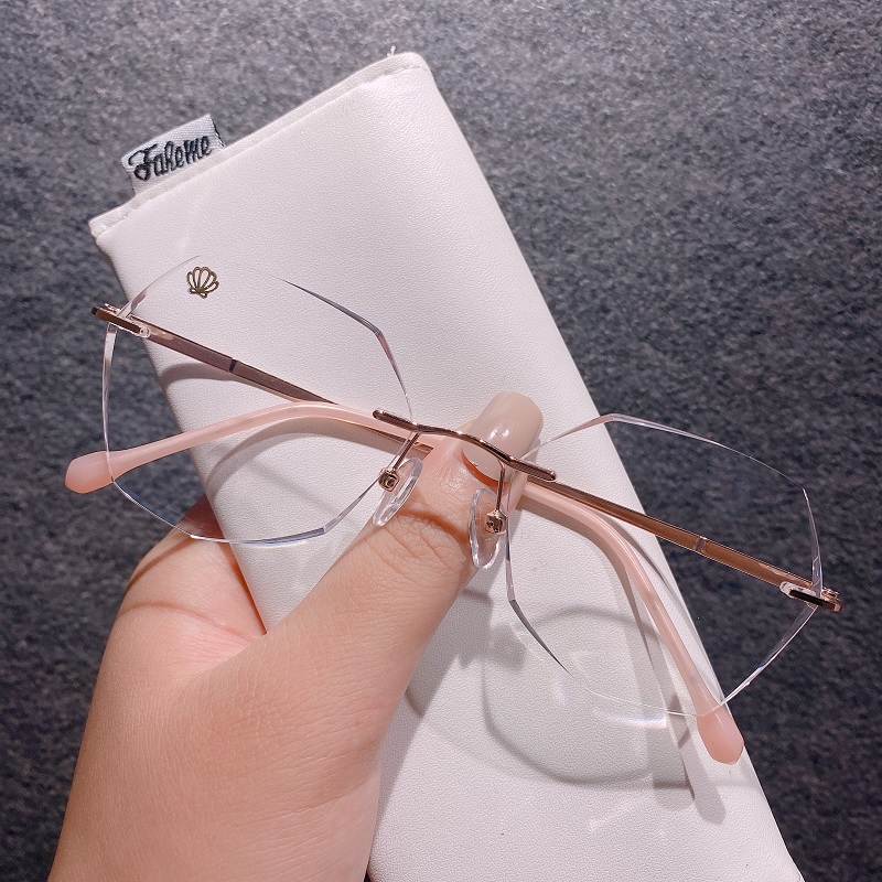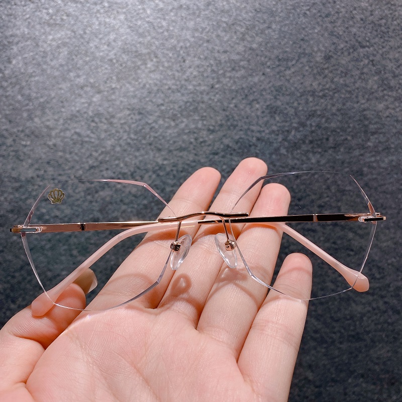 Frameless glasses female myopia can be equipped with degree discoloration anti-blue light diamond cutting edge big face face small male Korean version of the tide