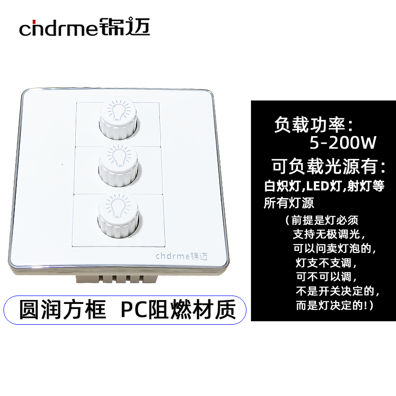 Jinmai dark installation 86 type three-position dimming switch bulb Stepless dimming switch panel adjustable LED lamp adjustable