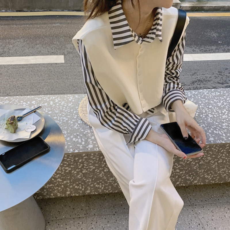 Goddess Fan temperament Ocean Broadlegged Pants Fried Street Fashion Heben Light Cooked Breeze Professional small fragrant wind two-style suit Women's autumn