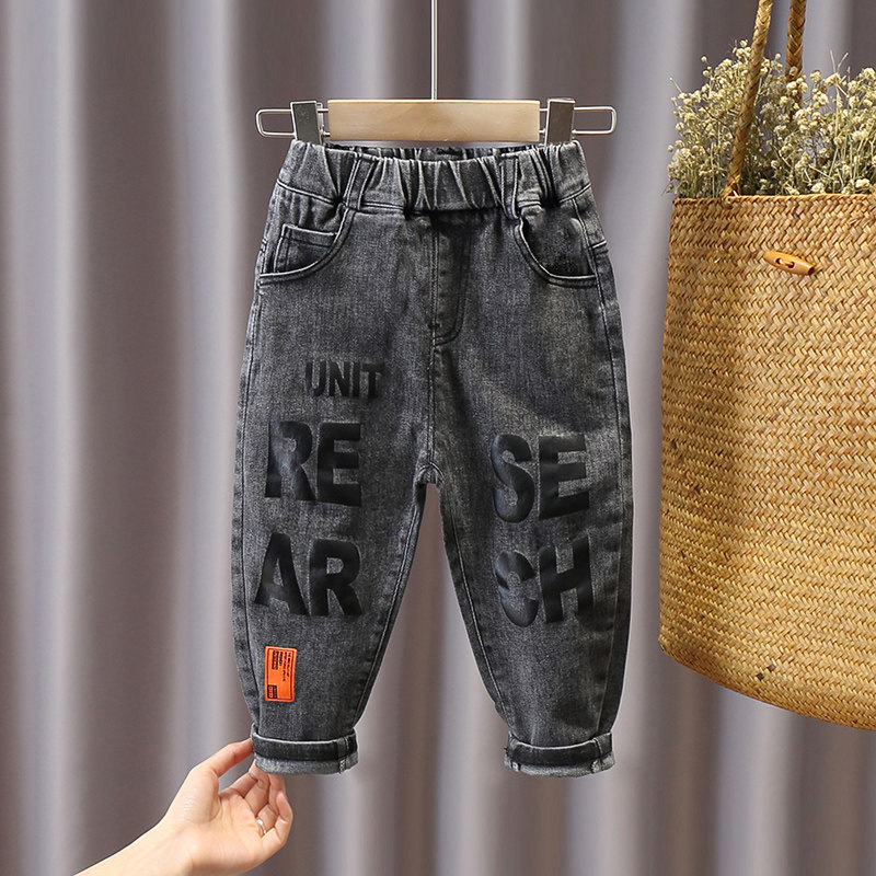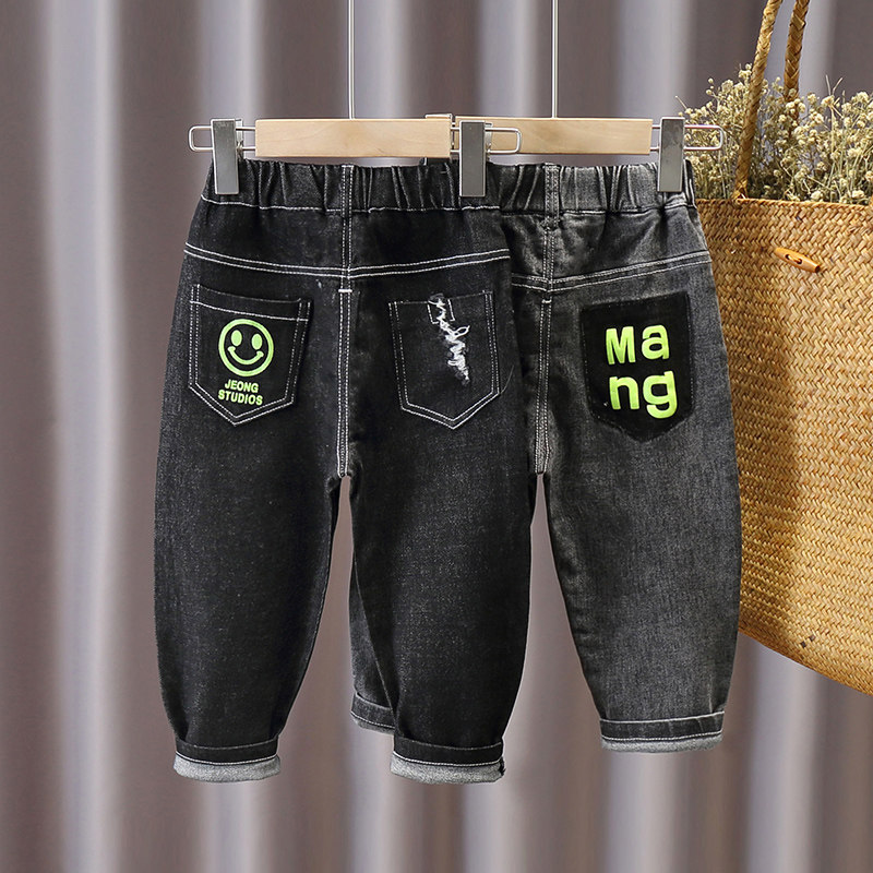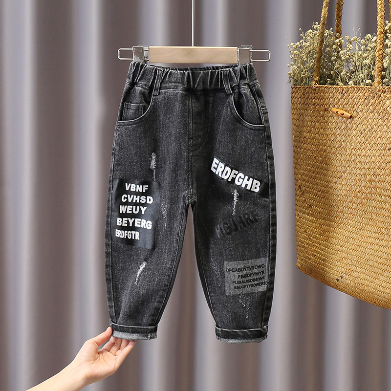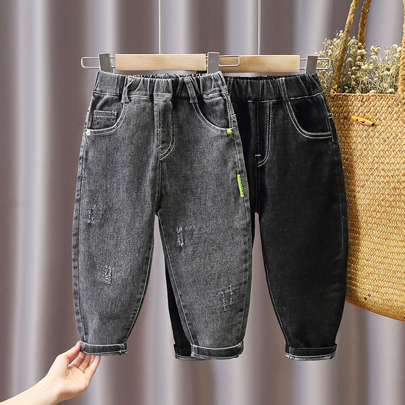 Boys' pants spring 2021 new children's jeans children's spring and autumn Korean version of the Western style ripped trousers tide