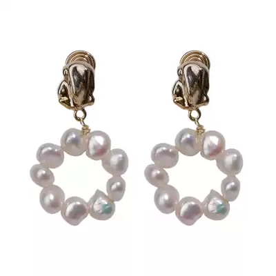 No ear hole into the natural Baroque pearl ring ear clip mosquito coil coil French advanced temperament ins Korea