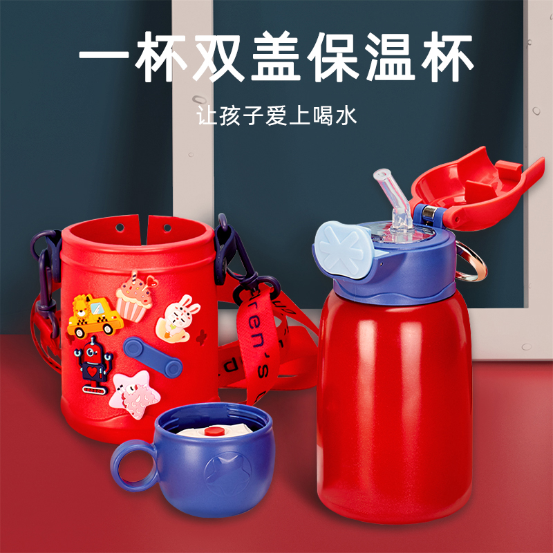 Children's insulated cup with straw jug Kindergarten Pupil 316 Stainless Steel Dongle Double Cover Baby Baby Water Cup