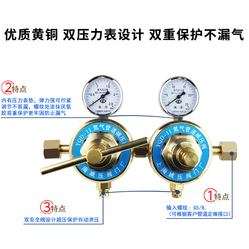 Shanghai minus all copper dual-class pipe nitrogen pressure reducing valve YQD-11 large flow pressure reducer secondary decompression table G5 8