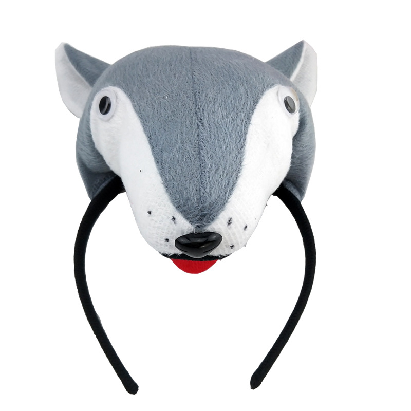 Children's Great Grey Wolf Hair Stirrup Prom Performance Romance Drama Evil Wolf Hair Hoop Animal Head Adorned with Halloween Wolf Head Stirrup dt