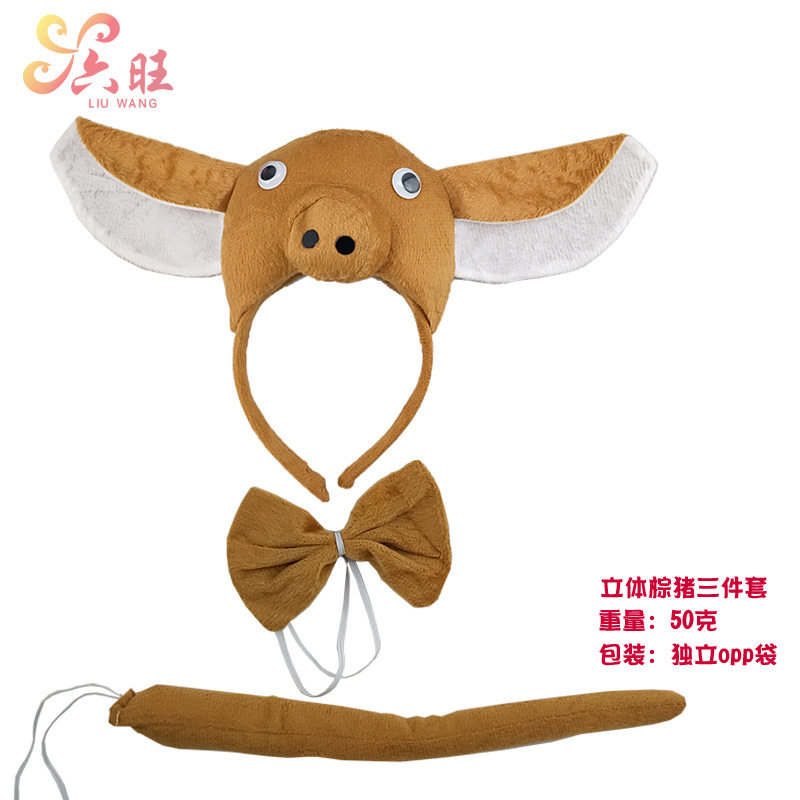 Section Children Hair Stirrup Hair Stirrup Small Pig Head Accessories Duozodiac Pig Piglets Headwear Children Performance Props Dt