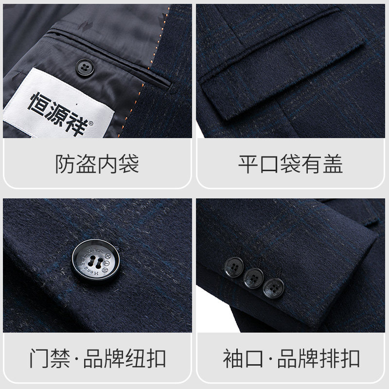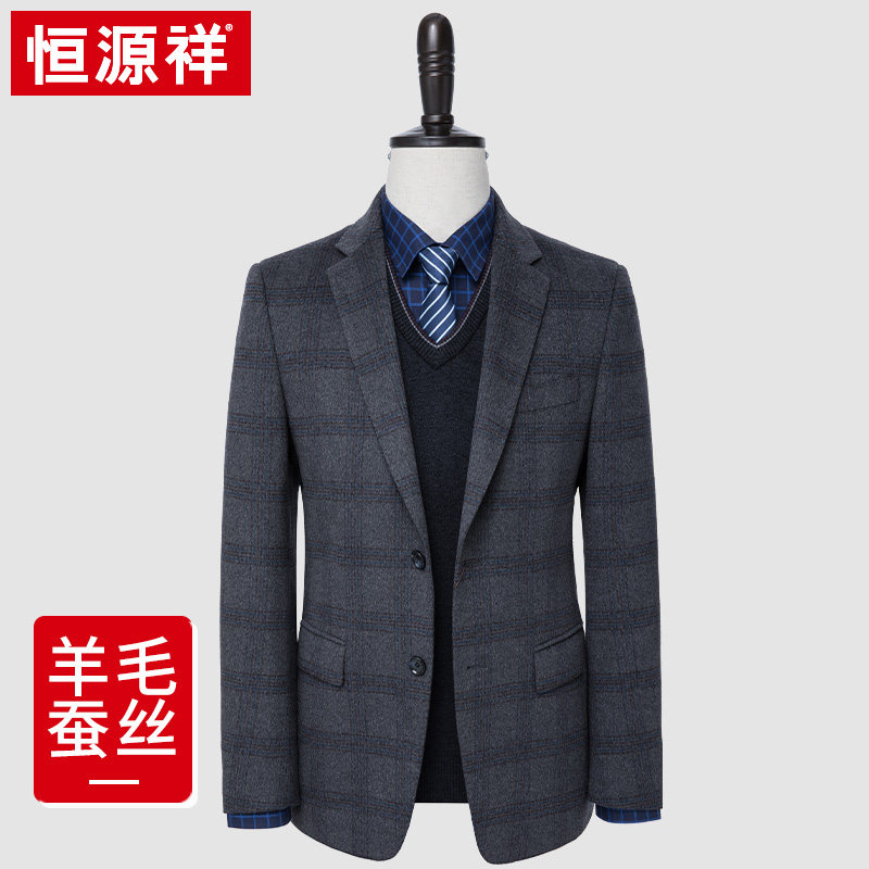 Constant Source Xiang Wool Mulberry Silk Plaid West Suit Men's Fall Constant Temperature Business Casual Short Jacket Man Style Fur Suits