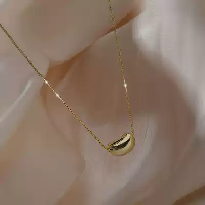 Korean Golden Bean necklace female sterling silver niche design sense light luxury choker simple temperament does not fade summer