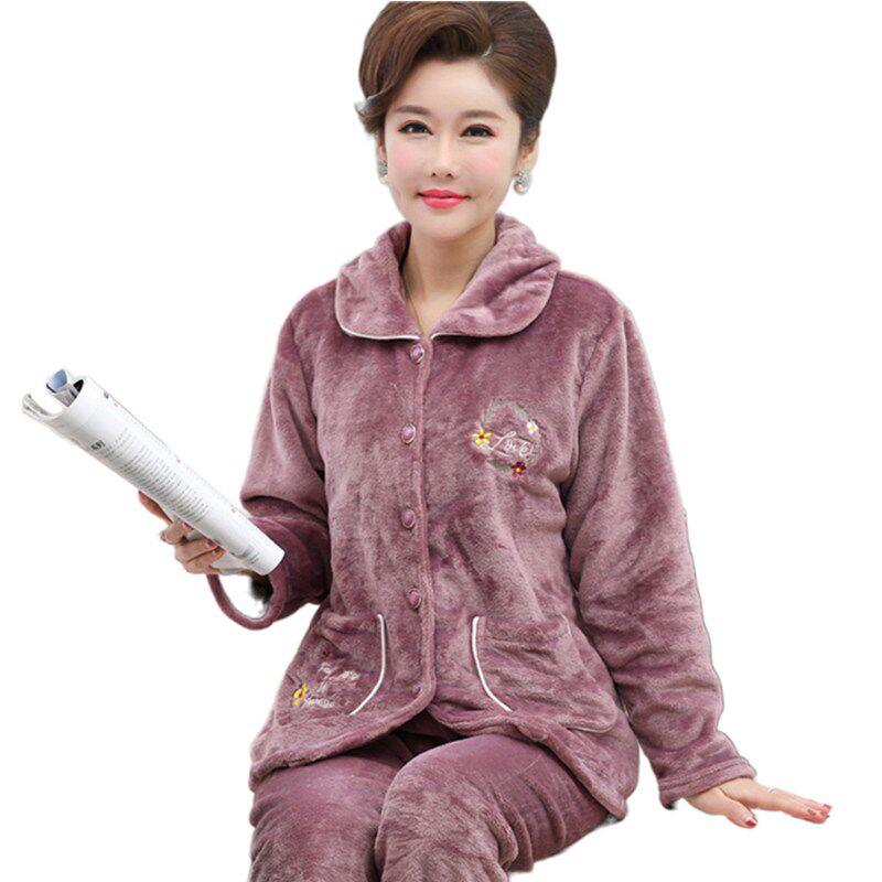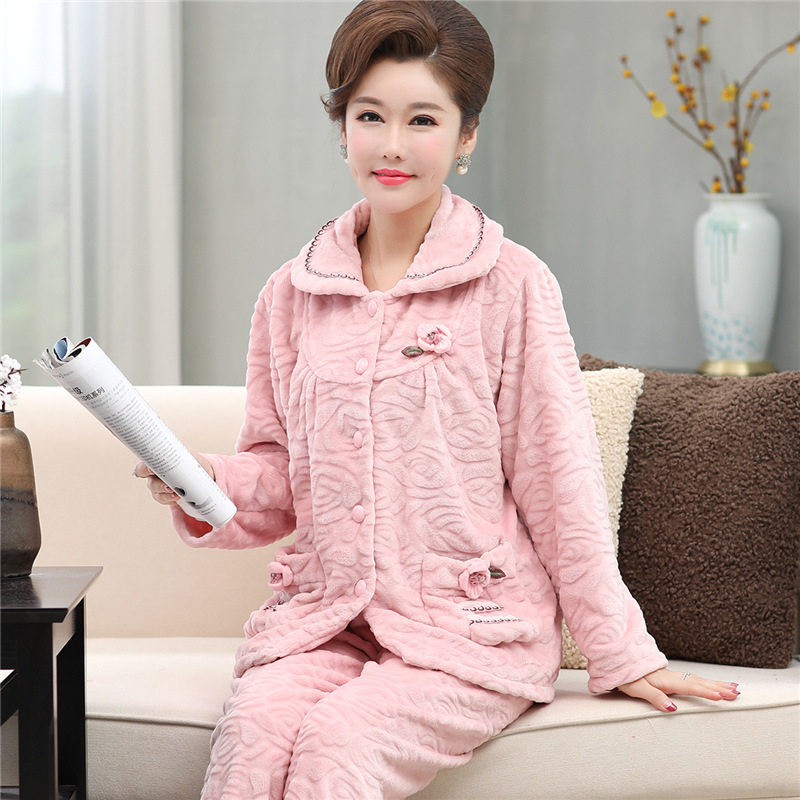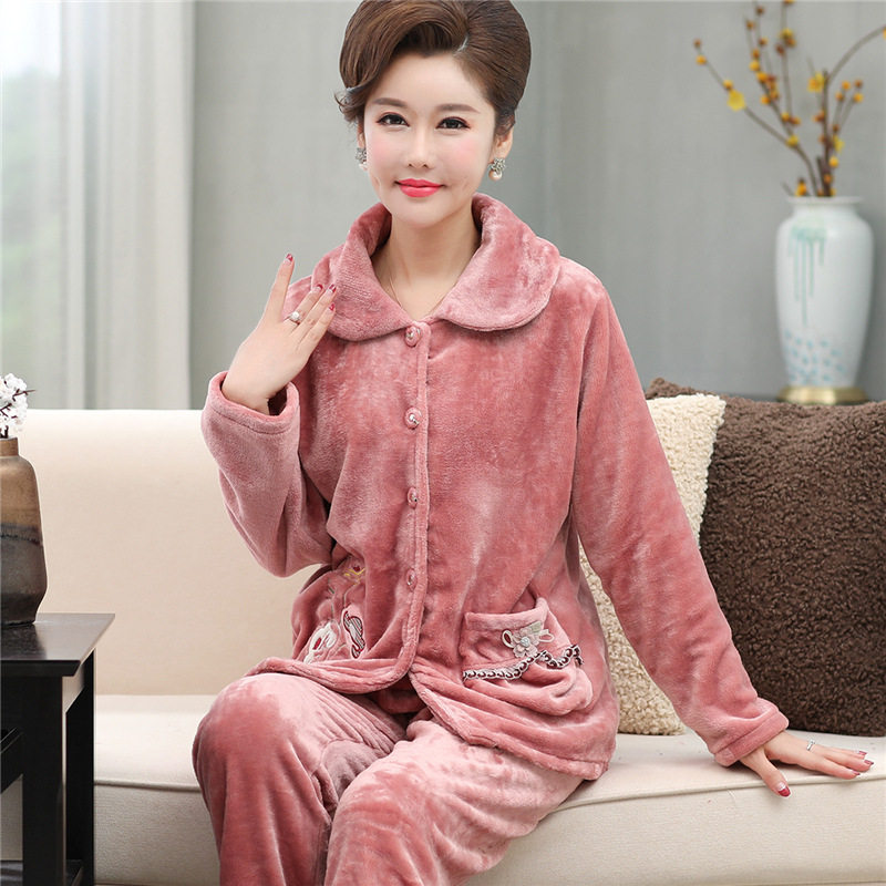 Middle Aged Mother Sleepwear Woman Autumn Winter Thickened Coral Suede Elderly Mother-In-Law Garnter Thickened Mid-Aged Flange Suede