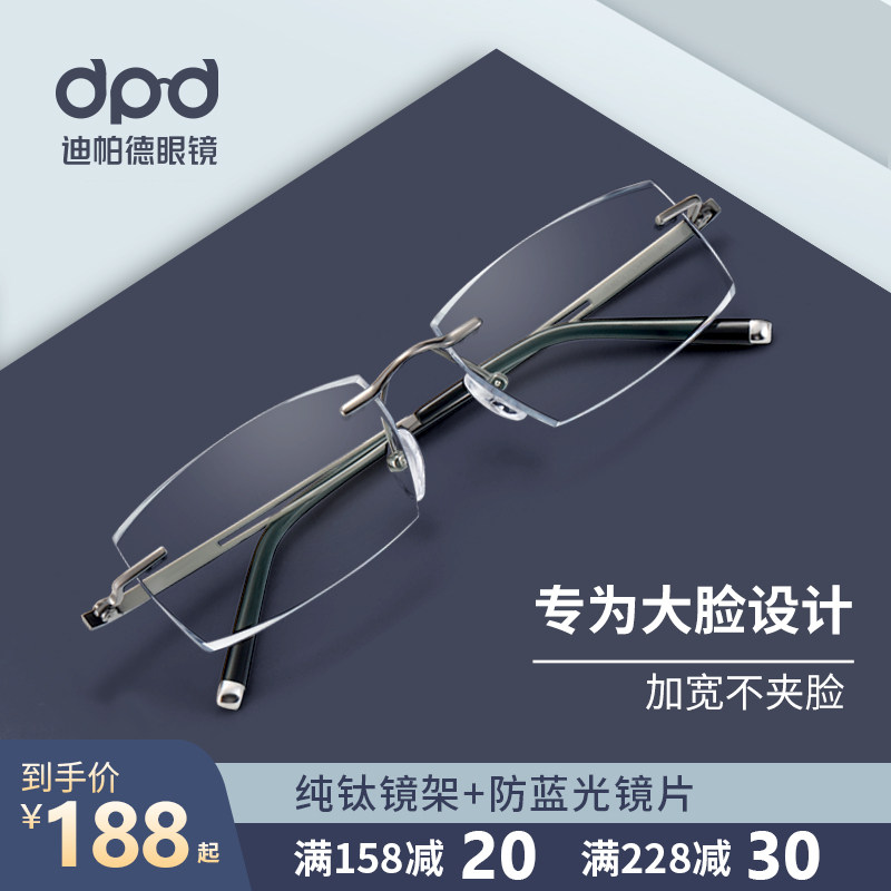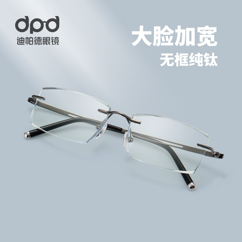 Big face glasses men's trendy frameless pure titanium business fat face widened large cut edge with degree anti-blue light myopia glasses