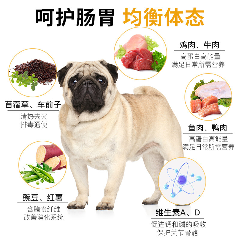 Dad Wang's special pug dog food full price general nutrition puppy adult dog small and medium-sized dog formula 2 5kg