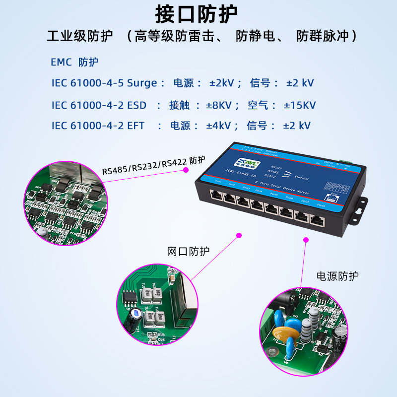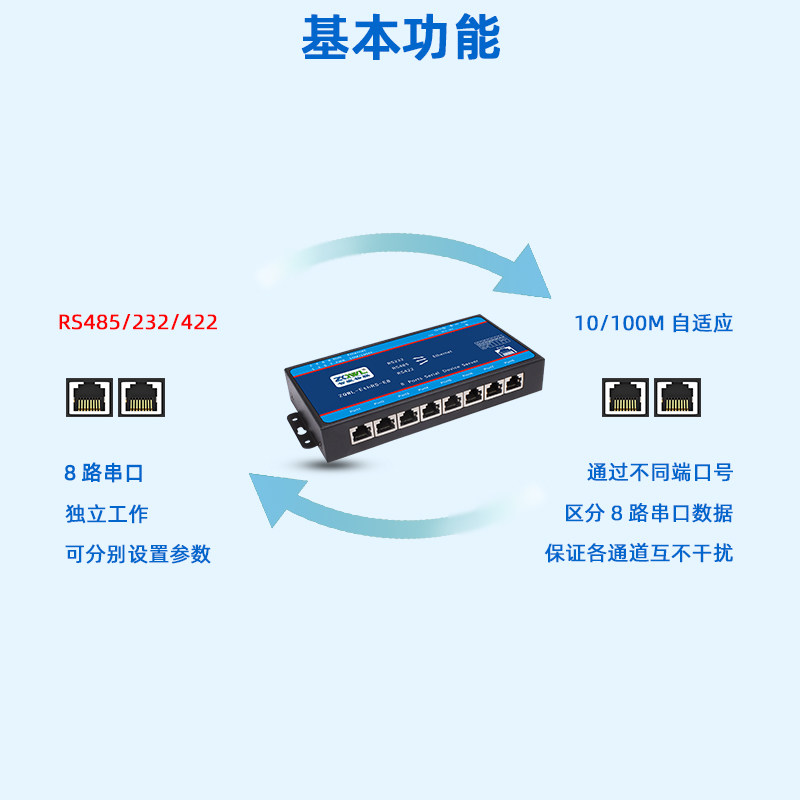 Smart embedded 8 serial port communication server module RS232 485 422 to Ethernet Modbus gateway RTU