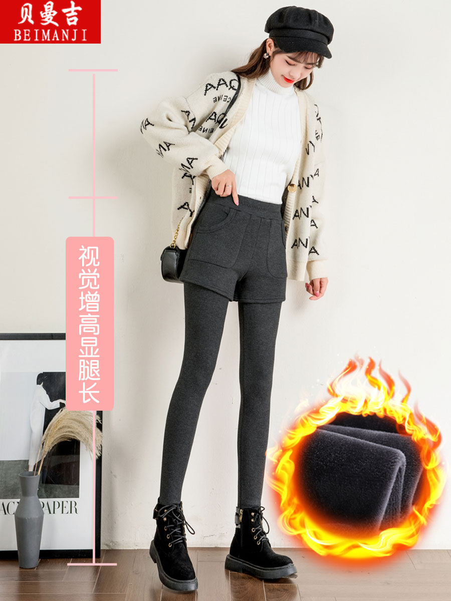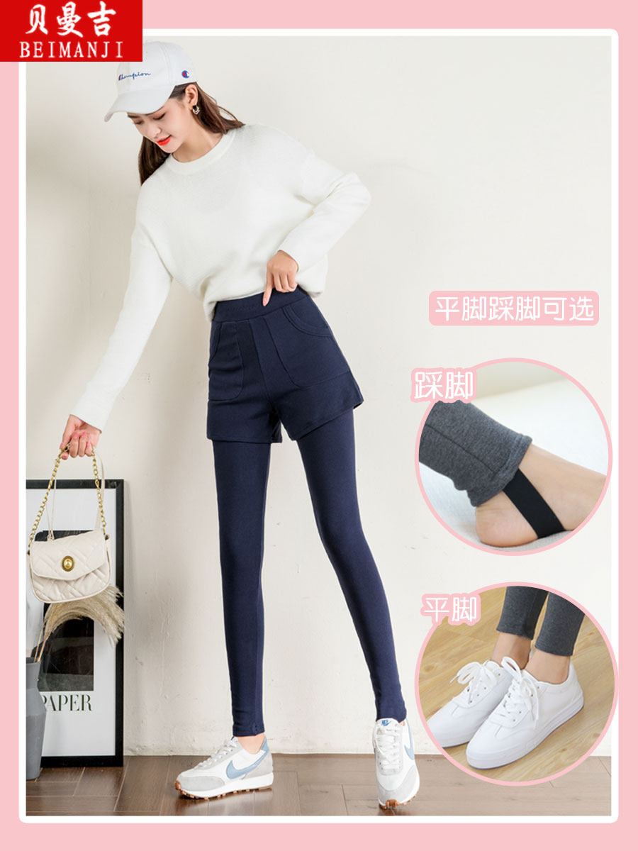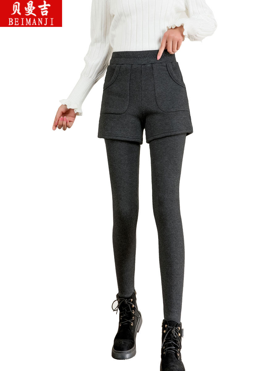 Plus velvet thickened fake two-piece leggings women's high waist pure cotton shorts warm cotton trousers spring autumn winter thin section elastic feet