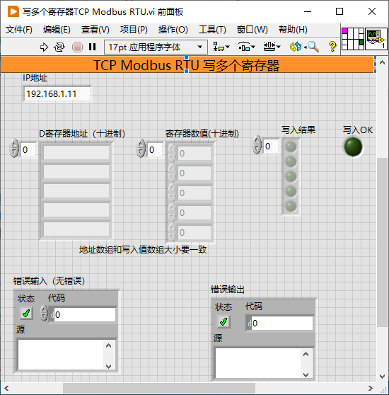 Labview TCP Modbus RTU and PLC read-write communication instance source code