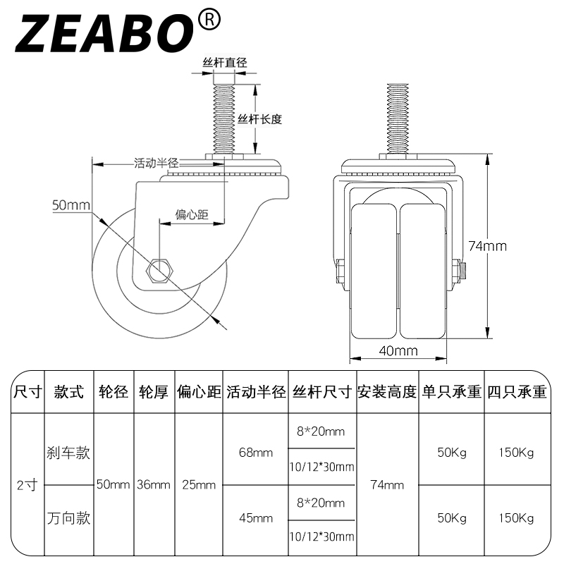 M8 brake wheel (single support) M8 universal wheel (single support) M10 brake wheel (single support) M10 universal wheel (single-support fit) M12 brake wheel (single-support) M1