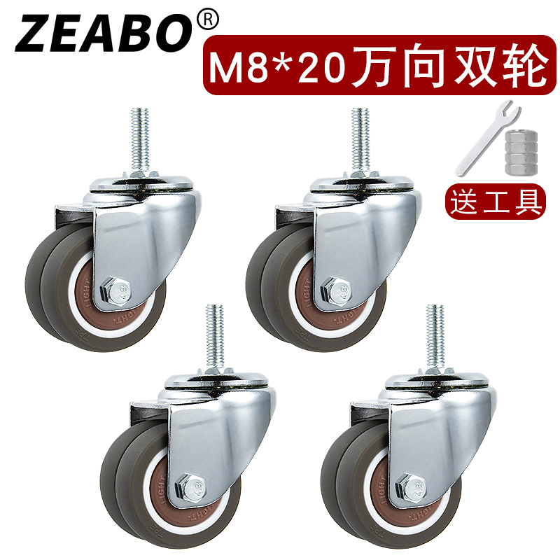 2-inch double wheels high bearing silent screw rod M8 M10 castors universal wheels furniture accessories TPE rubber wheel wheels