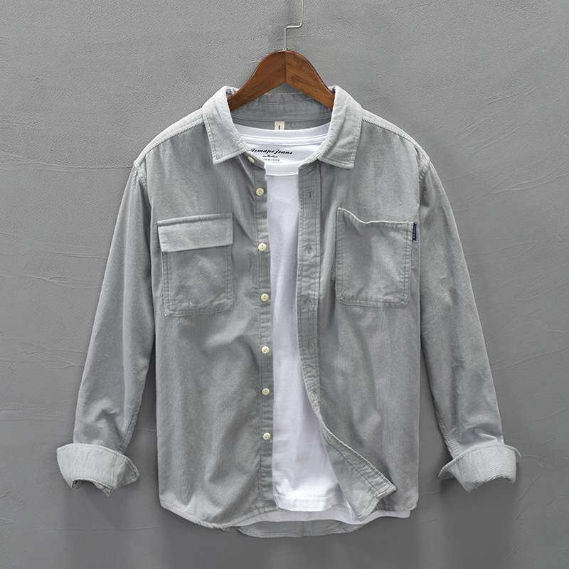 Light core suede shirt men's long sleeve inch shirt spring autumn season mill fur casual pure cotton loose dad shirt Korean version trendy