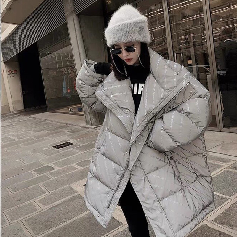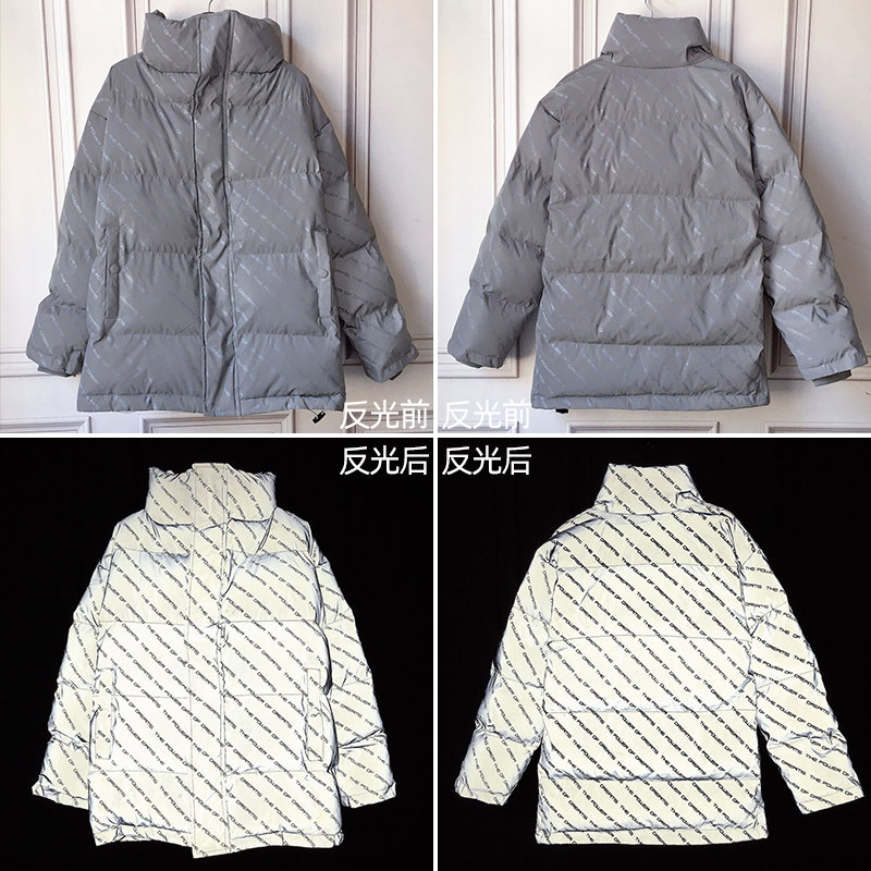 2021 Winter new letter printing reflective down cotton clothes female design sense minority couple thick national tide cotton coat