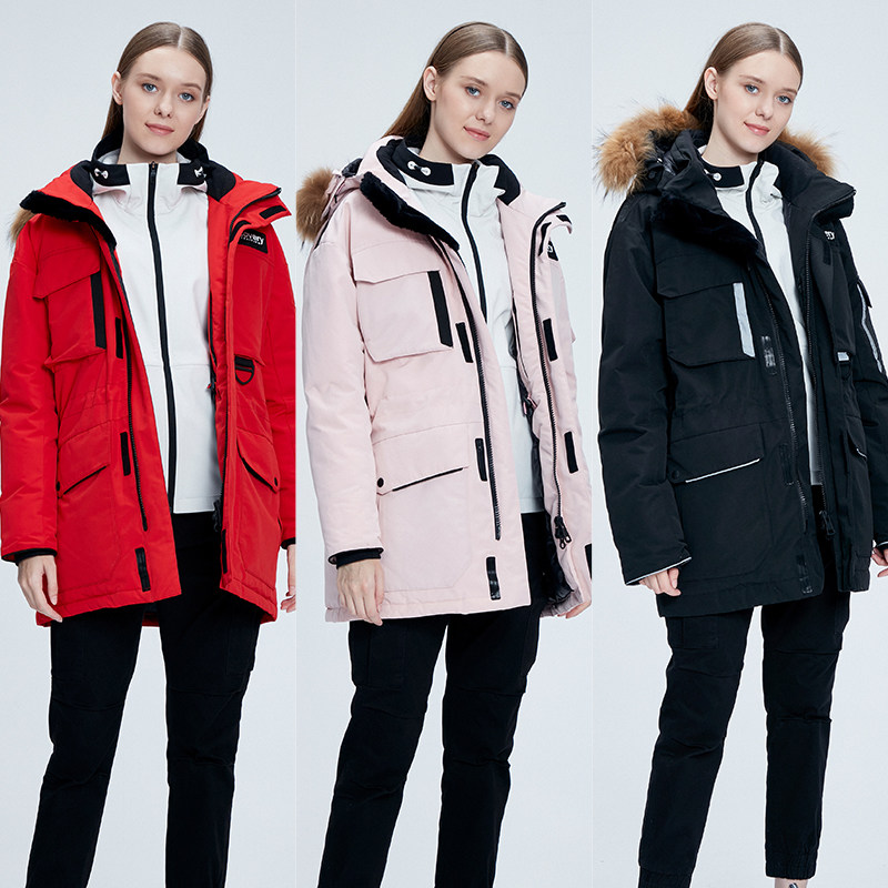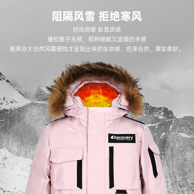 Discovery Winter Down Clothes Woman Han Edition Big Goose in Long version of big fur collar overalls to overcome cold-resistant jacket man