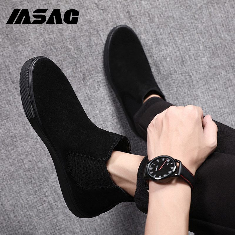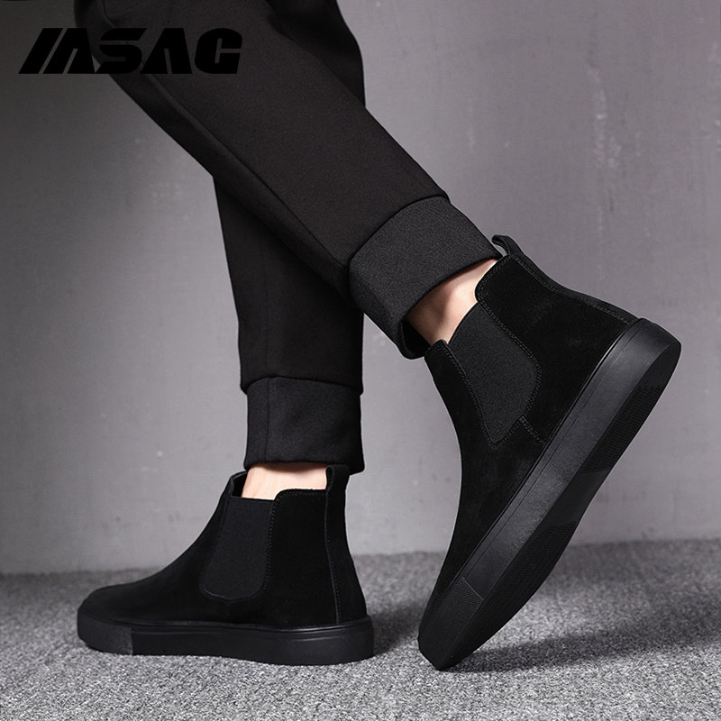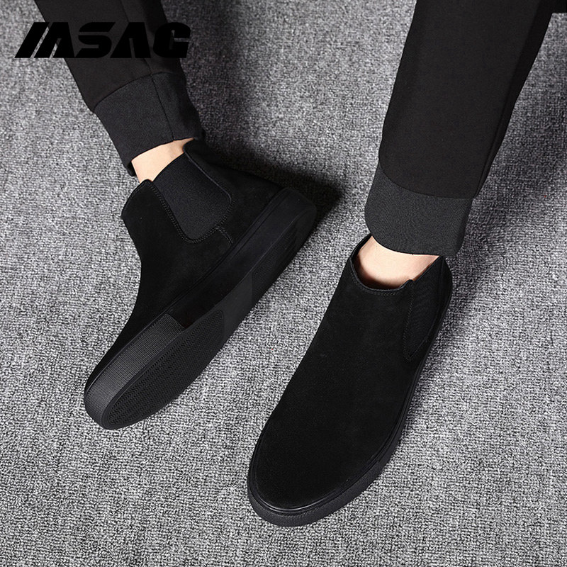 Martin Boots Male high cylinder Han version Anti-suede leather male shoes plus suede male boots Chauded shoes Winter frosted Inron casual shoes short boots