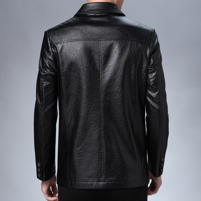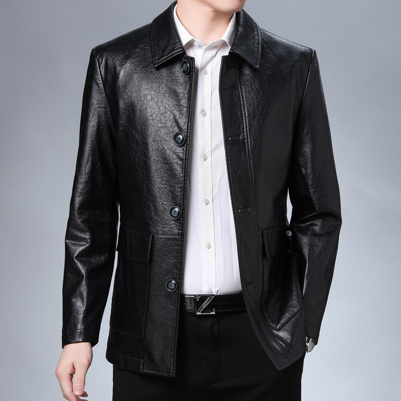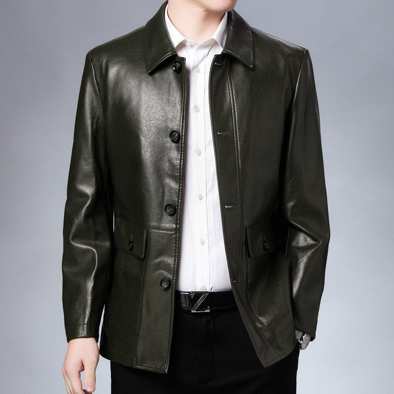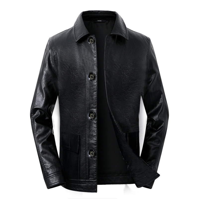Woodpecker middle-aged men's leather clothes spring new leather leather jacket turtleneck with loot jacket for large size male coat