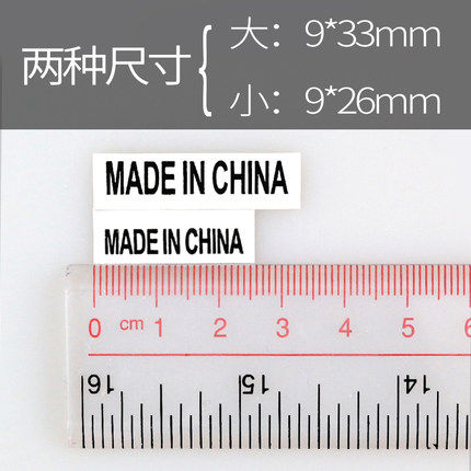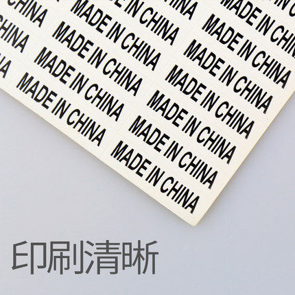 made in china mark adhesive label sticker English word black character white base china manufacturing label