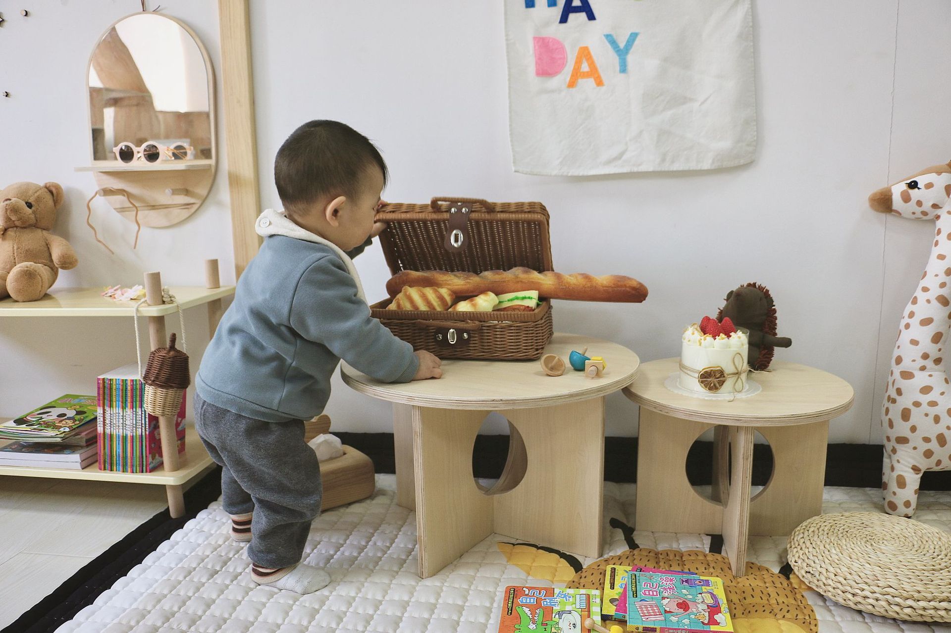 Pine small round table (38*38*28CM) Solid wood multi-layer board small round table(38*38*28CM) Solid wood multi-layer board large round table(50*50*32CM)