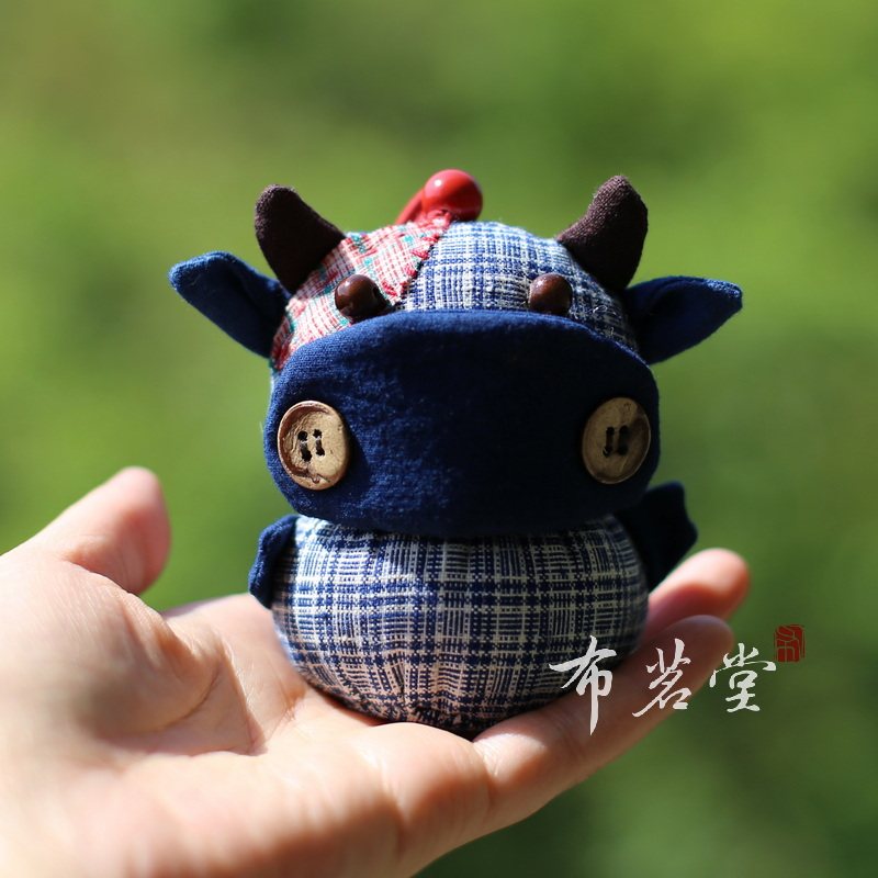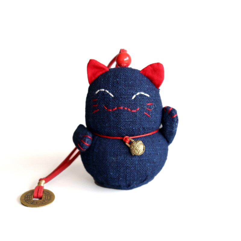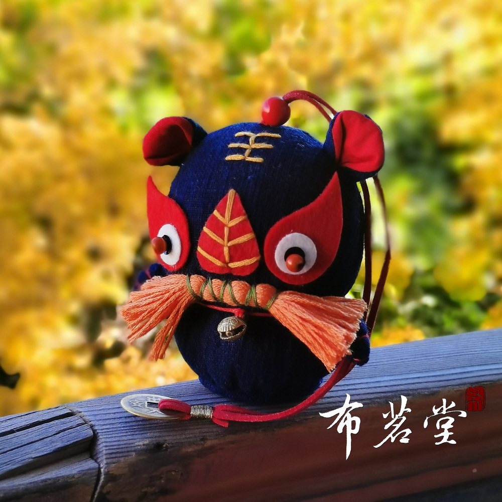 Bu Ming Tang Zhao Cai Cat Sachet Bag Trailer Hanging Handmade Thorn Plant Blue Dyeing