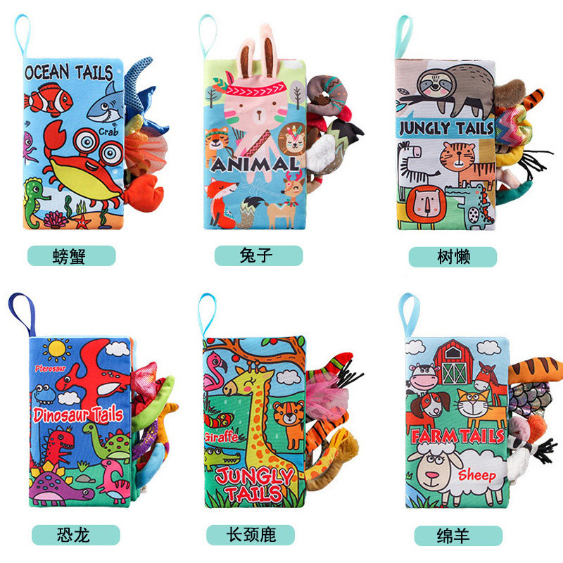 Baby cloth book baby can't tear but can bite 3D three-dimensional tail book early education cognitive puzzle enlightenment 6-12 months