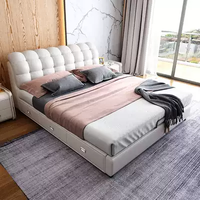 Bed economy of small-sized modern minimalist master zhen leather bed storage bed bed 1 8 meters nuptial bed soft