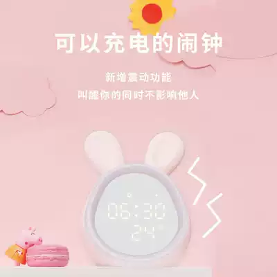 Time Rabbit Smart Alarm Clock Creative Personality Primary School Students with Rechargeable Children Cute Cartoon Big Display Alarm
