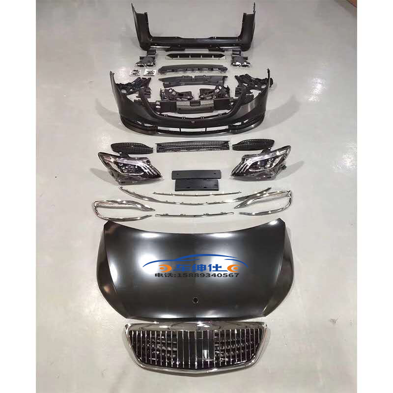 The whole set surrounds the front bumper plus the middle grille, the rear bumper plus the tail mouth, the Maybach living room light, a touch of blue living room light, LED living room light tail light, the whole car bright strip
