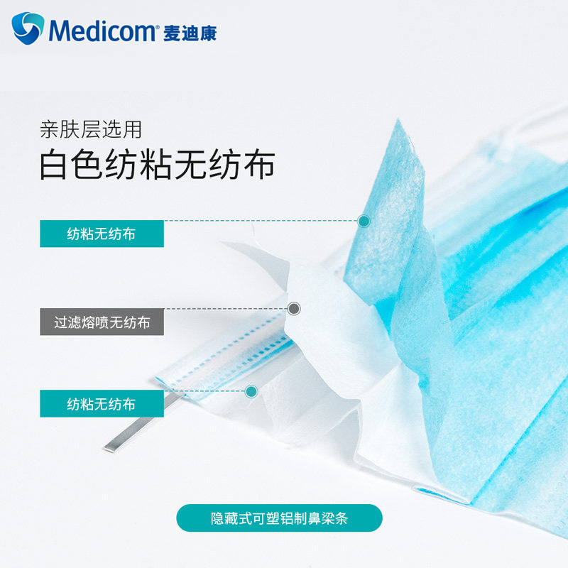 Medicom Disposable Ordinary Medical Mask Medical Student Aluminum Nose Bridge Strips Containing Meltblown Cloth 50pcs