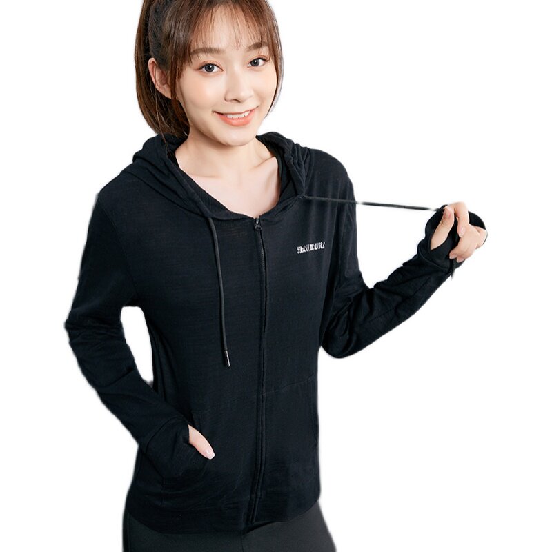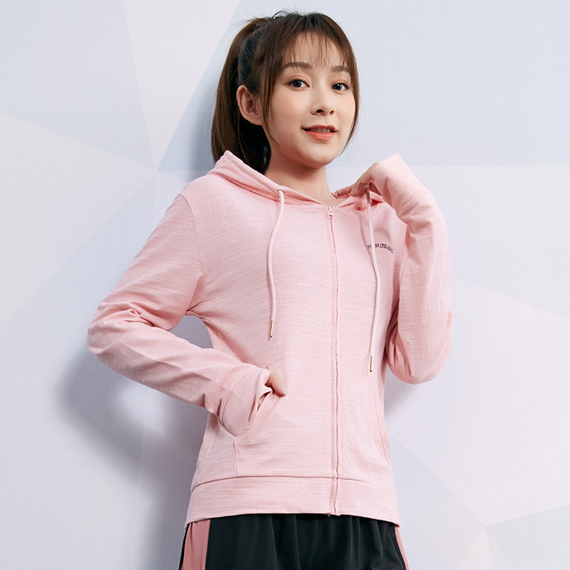 Women's Fall Cotton Zip Hooded Yoga Fitness Top Print Loose for slimming Running Training Dress Long Sleeves