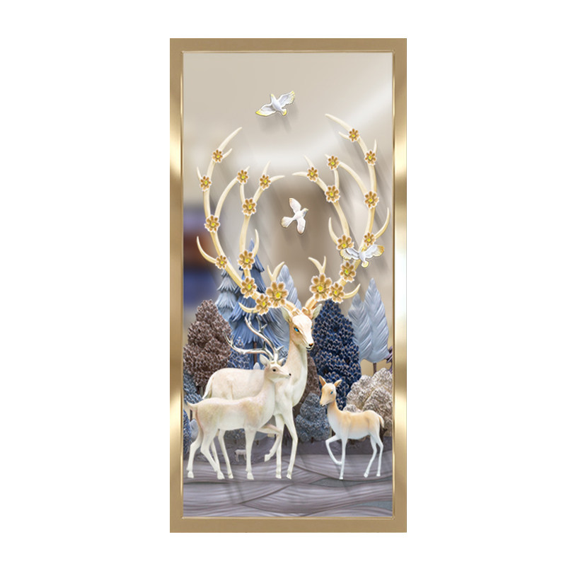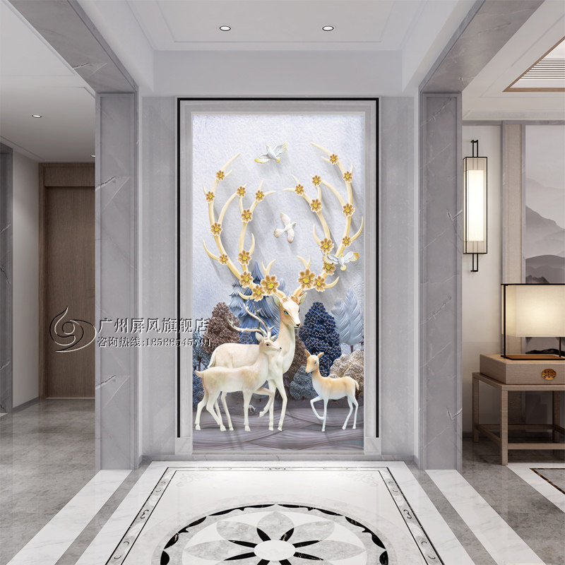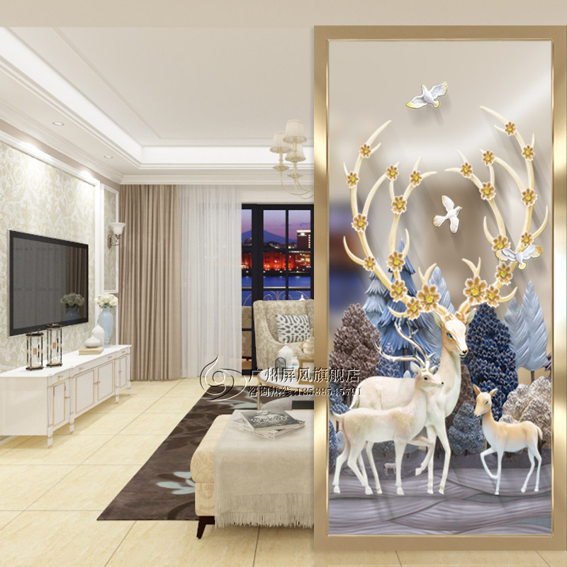 3D Color Glazed Craft Modern Art Glass Partition Cabinet screen Xuanguan Background Style Xiangyun double-sided mother-son deer