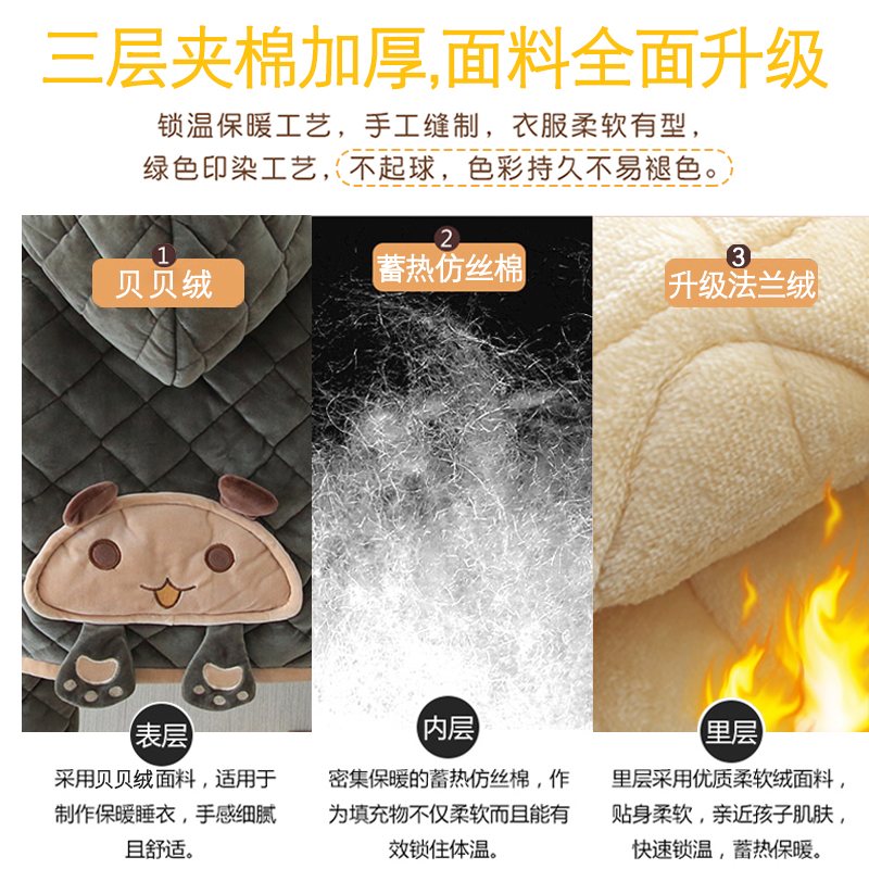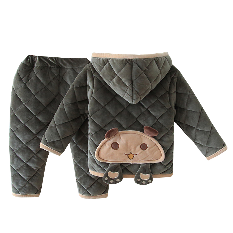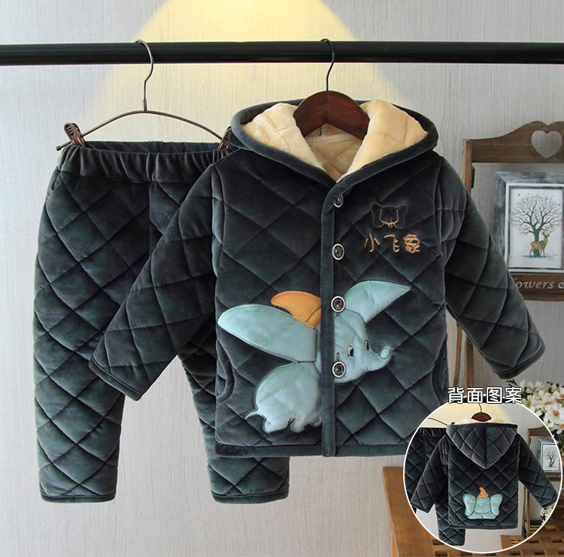 Boy Coral Suede Home Suit Suit Triple Thickened Cartoon Baby Girl Winter Child Flannel Pyjamas