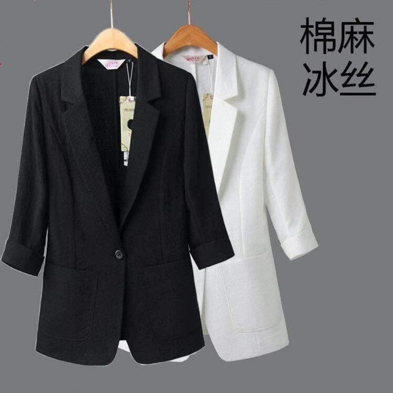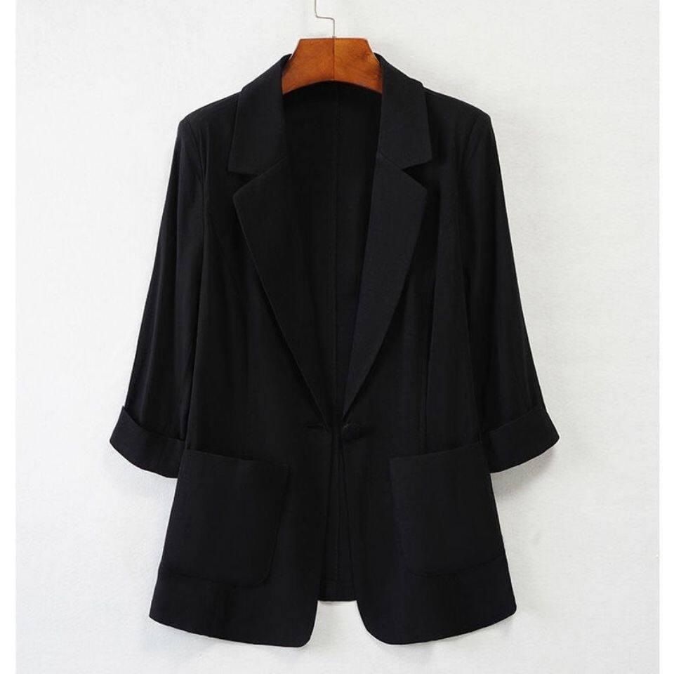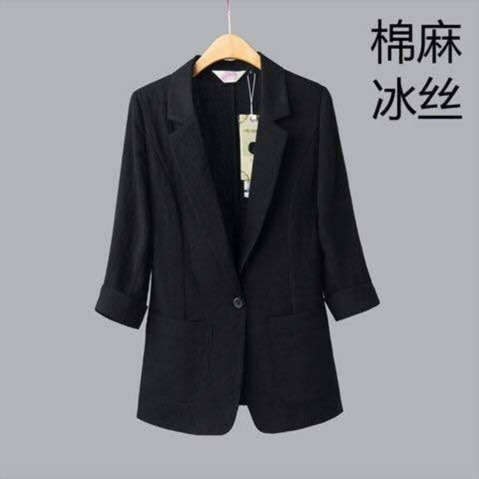 Small suit women thin ice silk cotton 2021 spring and summer new solid color casual wild suit large size jacket
