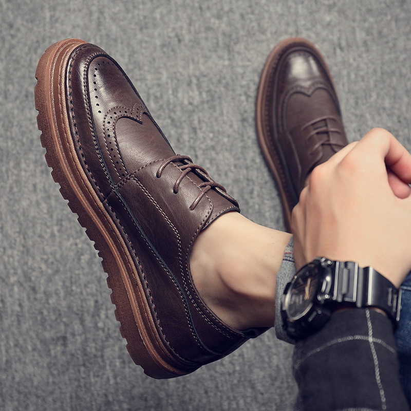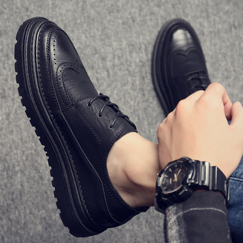 Touch Miss new men's shoes Korean version all-match casual leather shoes British low-top breathable skateboard shoes brogue shoes