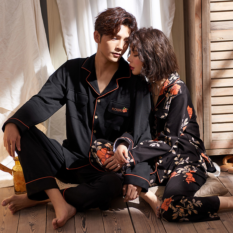 Mark Princess Couple Sleepwear Woman Spring Autumn Pure Cotton Long Sleeve Black Ins Tide 2021 New Men's Home Suits Autumn Winter