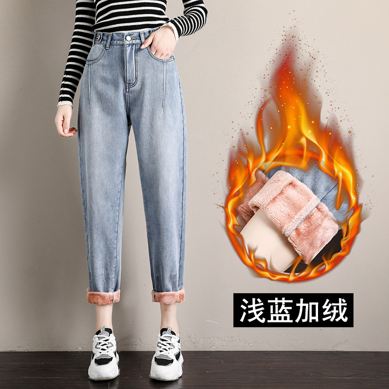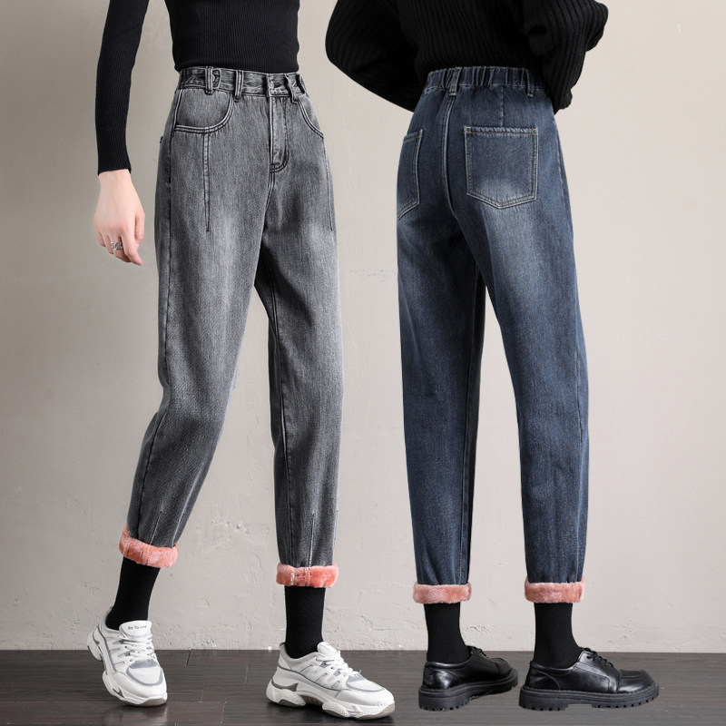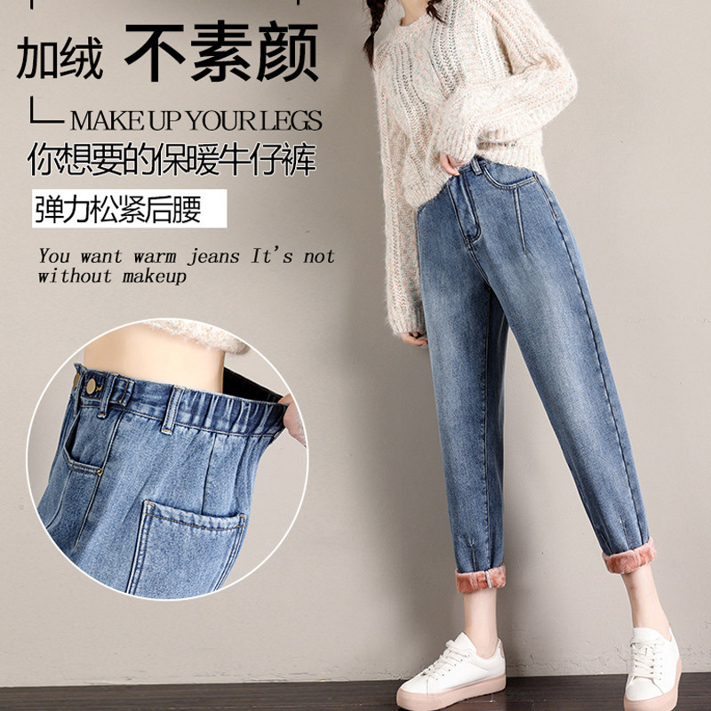 Velvet jeans women's autumn and winter 2021 new high-waisted loose Haren Rob outer wear elastic waist dad pants
