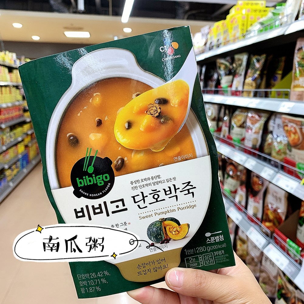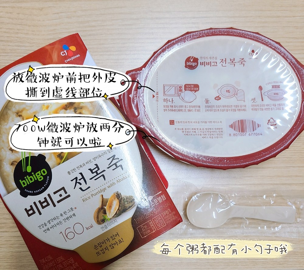 Korean straight hair CJ Xijie bibigo bibigo instant meal replacement porridge Beef porridge Abalone porridge Square portable with porridge