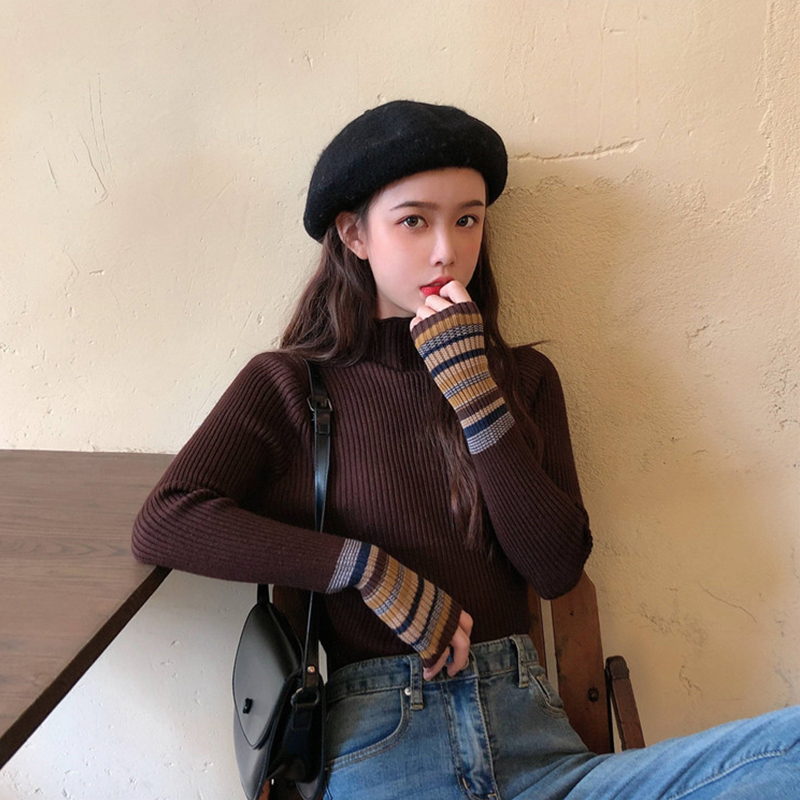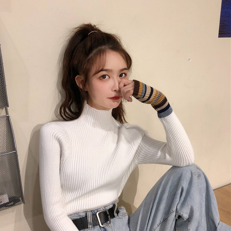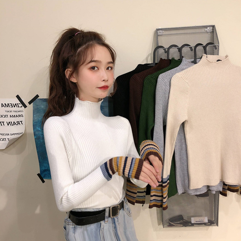 Black semi-high collar Coloured undershirt female autumn and winter new Korean version of the Korean version 100 hitch lap knit blouse