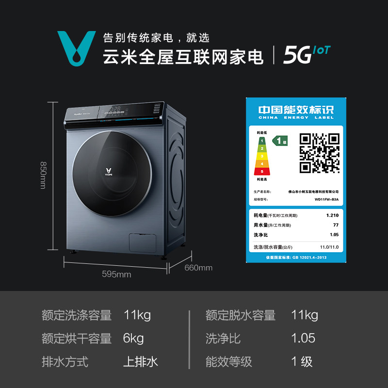 VIOMI Home intelligent automatic 11 kg washing machine washing and drying integrated AI intelligent eye washing intelligent delivery