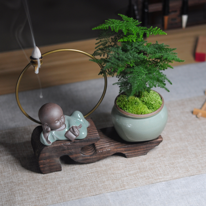 Wenzhu potted backflow fragrance Zen indoor flower green plant small desktop office Chinese style tea table bonsai