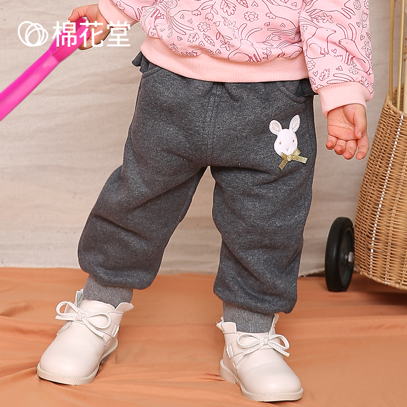Cotton hall children's clothing children's cute casual trousers boys and girls soft sports pants plus velvet thick casual loose