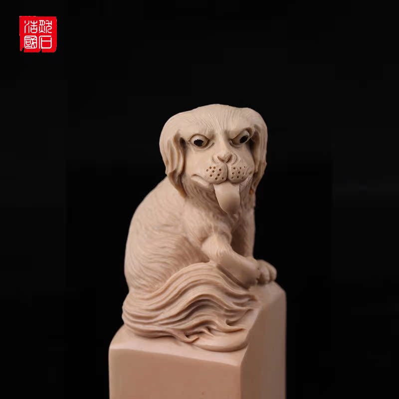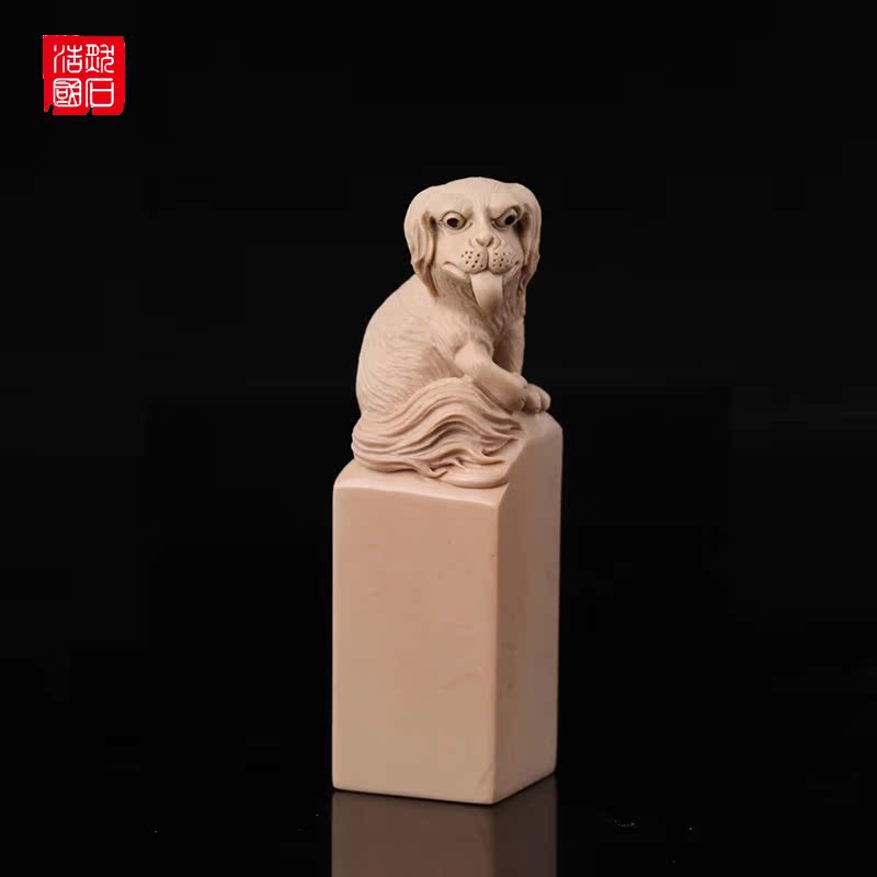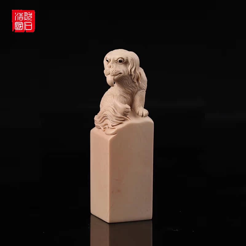 Shoushan Chi Descending Stone Handmade Engraving Seal Duozodiac Dog dog Merchants Town Residence Calligraphy Gifts collection Book Room Swaying Pieces