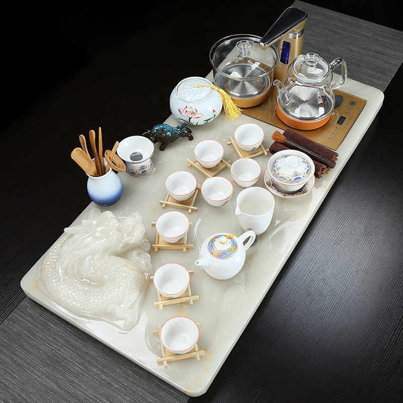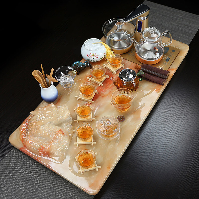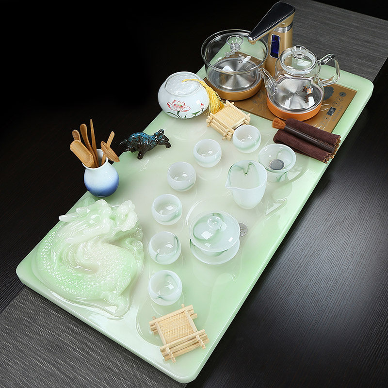Modern new stone jade kung fu tea set set home office living room fully automatic integrated tea table tea