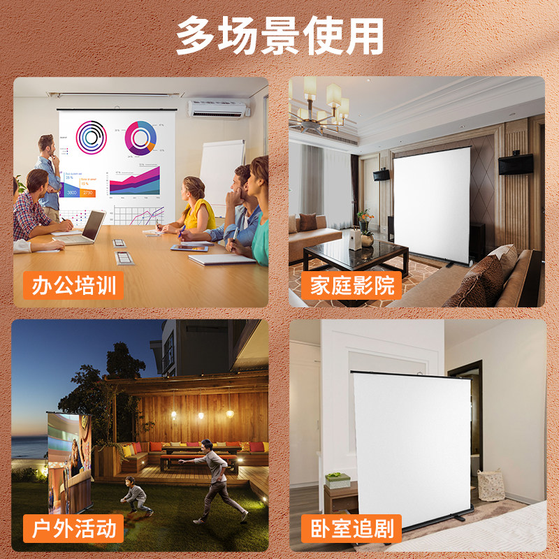 Color pull curtain projection screen portable mobile folding 84 inch 100 inch floor to ceiling curtain background wall home bedroom full screen manual lifting self-locking conference projector screen cloth