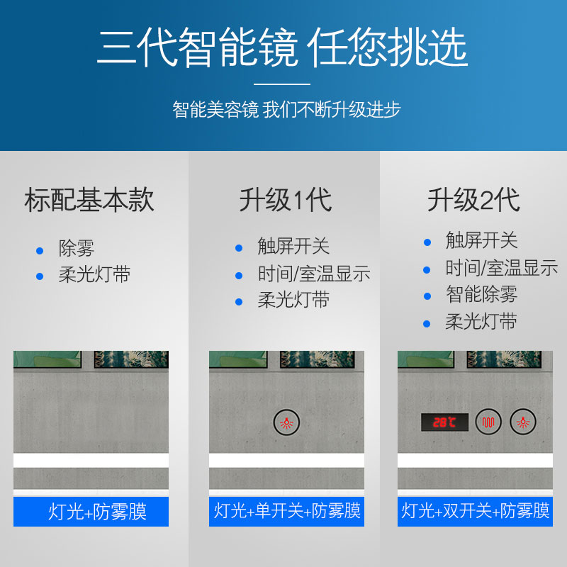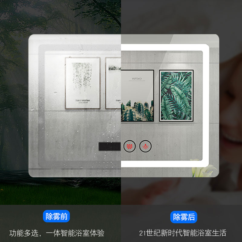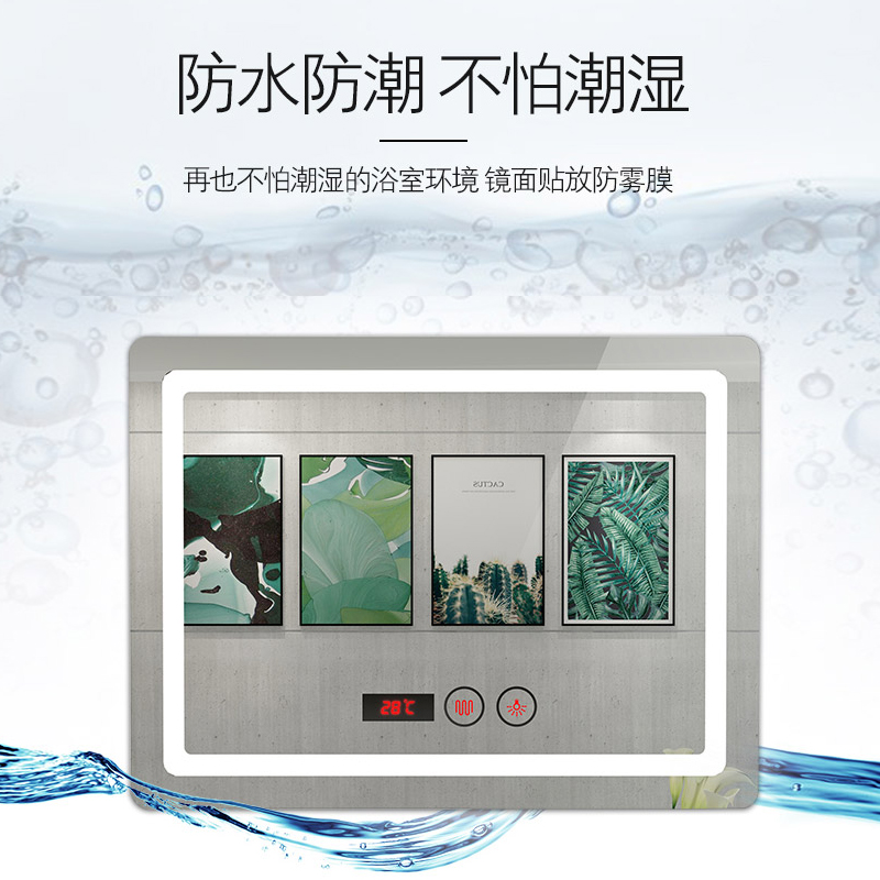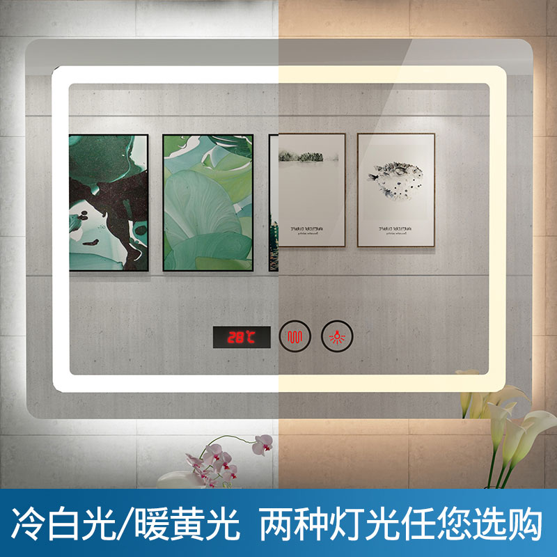 Smart anti-fog bathroom mirror with LED light Powder room Wall-mounted hand washing sink Bathroom makeup mirror Wall-mounted