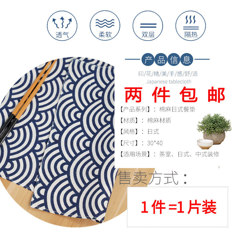 Place mat Japanese and wind cotton linen double fabric heat insulation anti-scalding mat coaster bowl mat pan mat plate mat for primary school students meal cloth